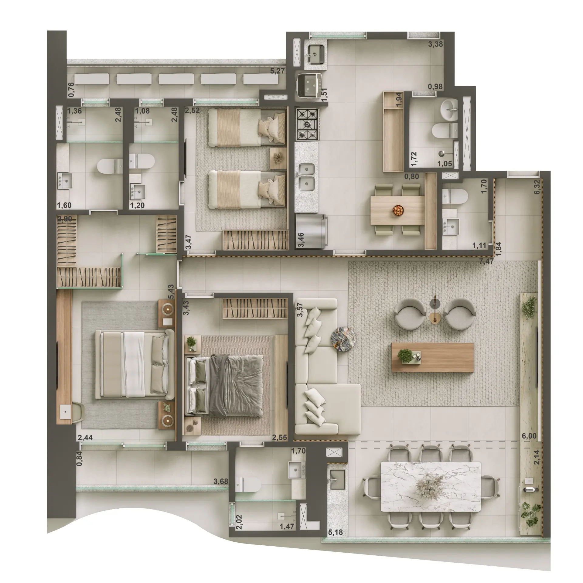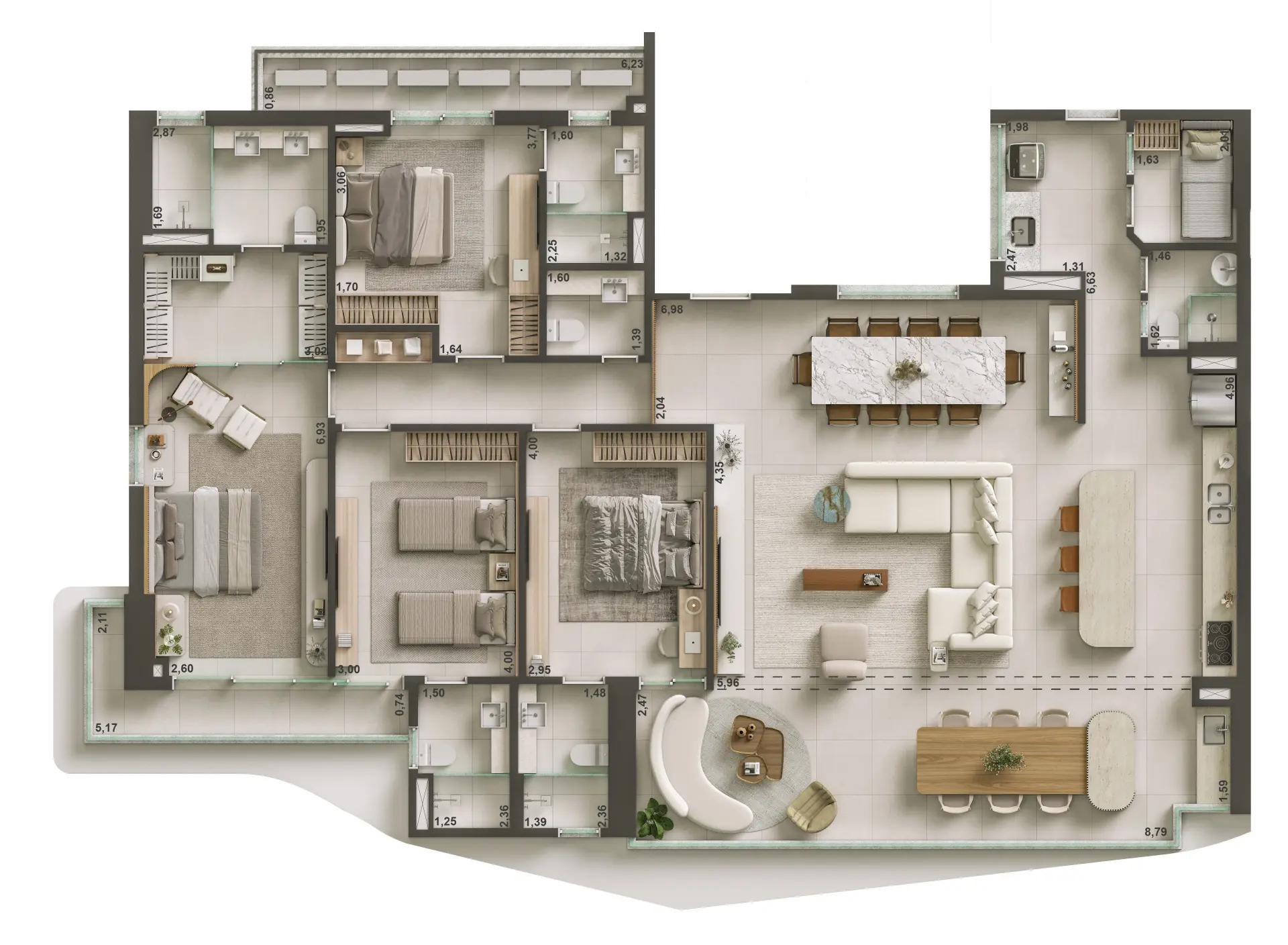 Apartamento de 208,43 m² – 3 suítes – 3 vagas