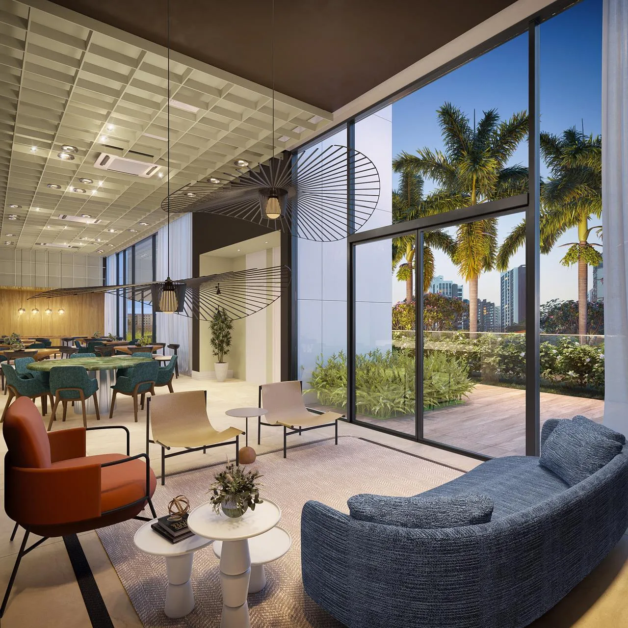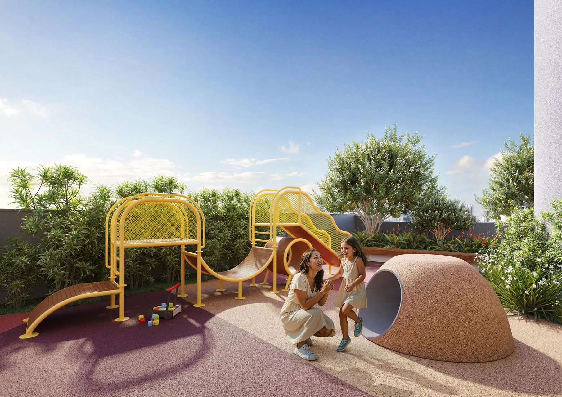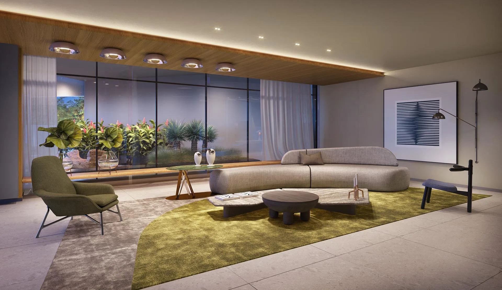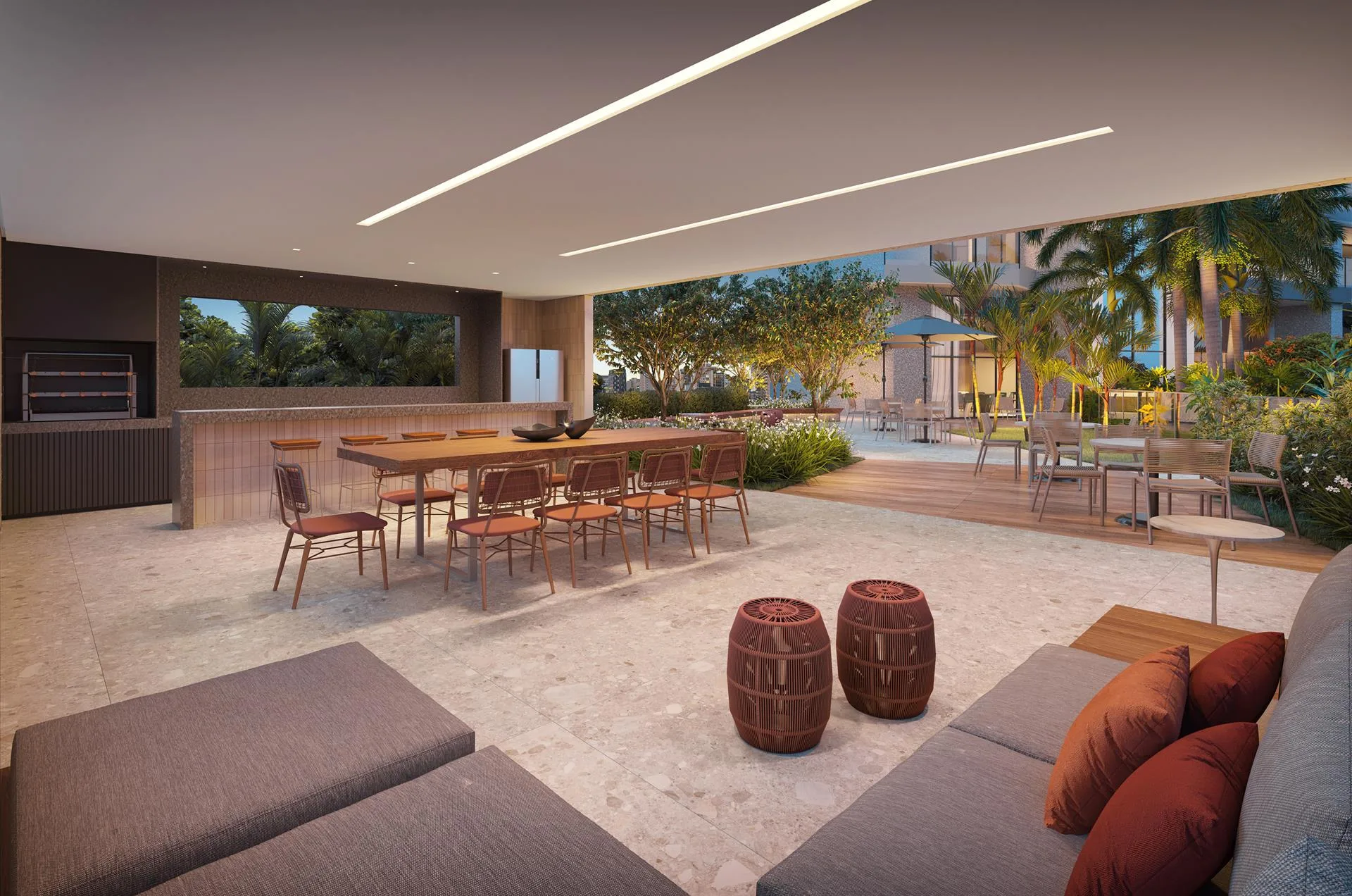 Um cenário feito para viver o melhor, todos os dias. Porte-cochère coberto e vagas para visitantes. Hall de entrada com pé direito triplo.Automação e iluminação das áreas comuns com lâmpadas de LED. Gerador com dois pontos por apartamento, sendo um de tomada e um de iluminação. Reutilização das águas das condensadoras do ar-condicionado. Pet place, brinquedoteca e quadra recreativa. Lounge bar com jogos e espaço fitness.