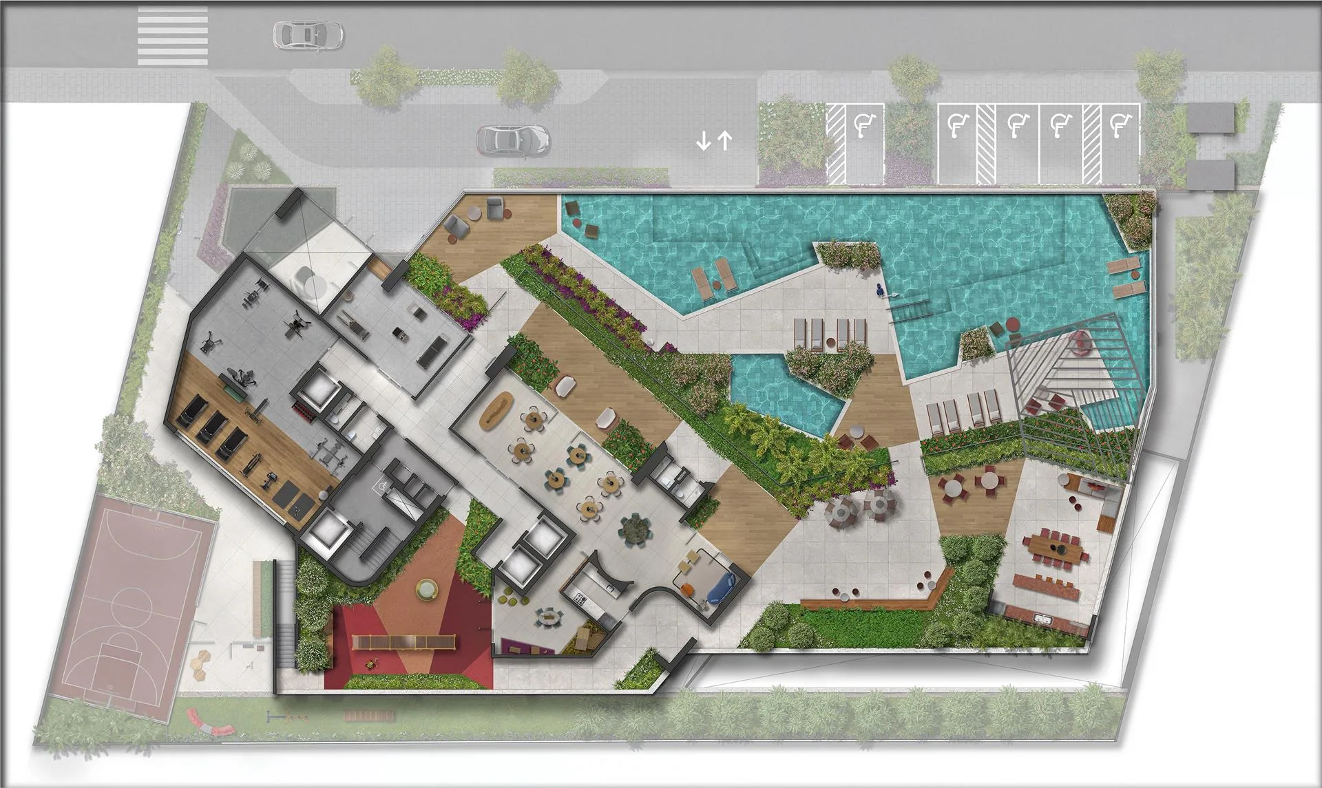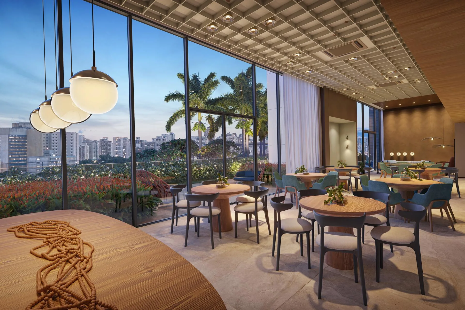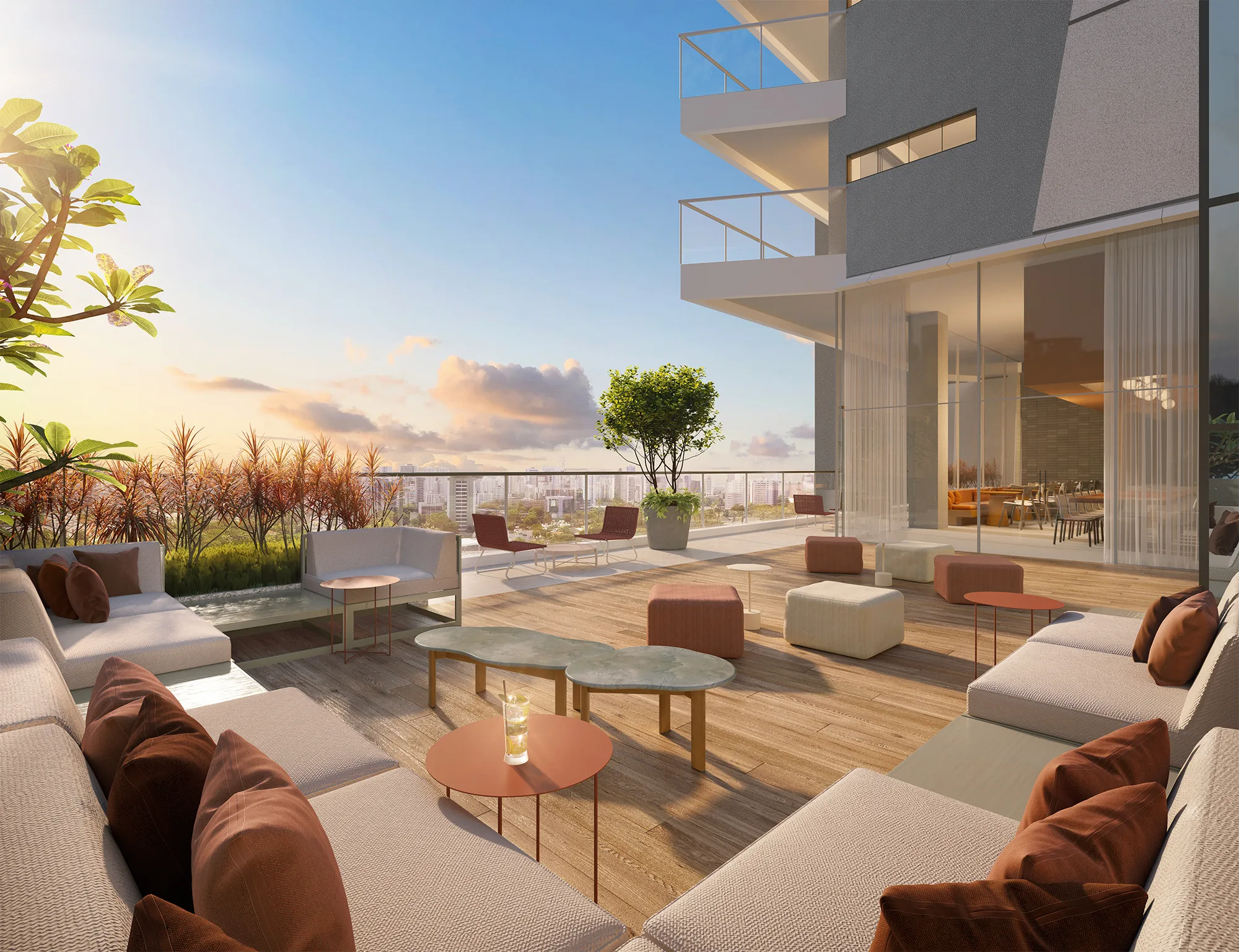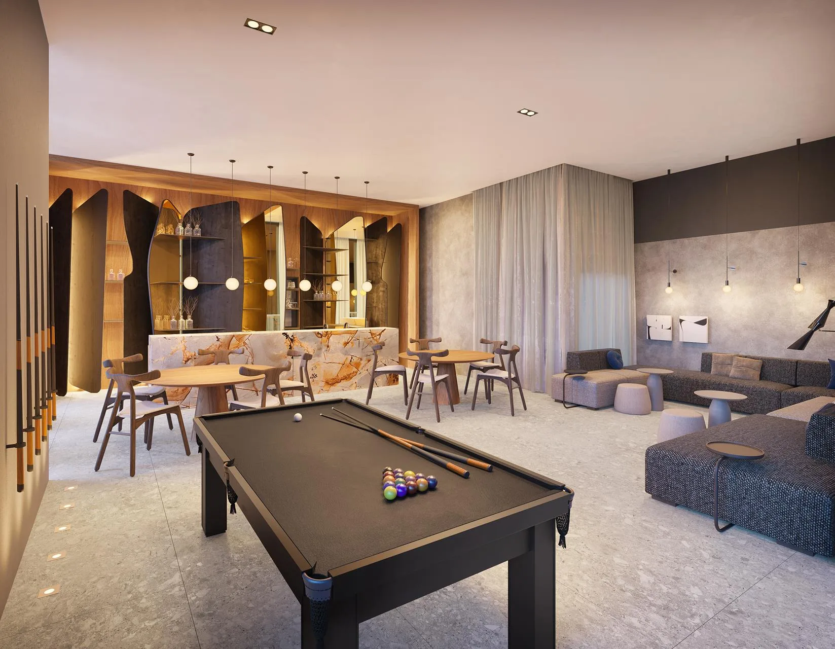 Um cenário feito para viver o melhor, todos os dias. Porte-cochère coberto e vagas para visitantes. Hall de entrada com pé direito triplo.Automação e iluminação das áreas comuns com lâmpadas de LED. Gerador com dois pontos por apartamento, sendo um de tomada e um de iluminação. Reutilização das águas das condensadoras do ar-condicionado. Pet place, brinquedoteca e quadra recreativa. Lounge bar com jogos e espaço fitness.