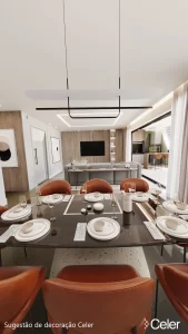 Apartamento com sala de estar e jantar, varanda gourmet integrada a cozinha,varanda, suíte master com banheiro duplo, closet, 4 amplas suítes.