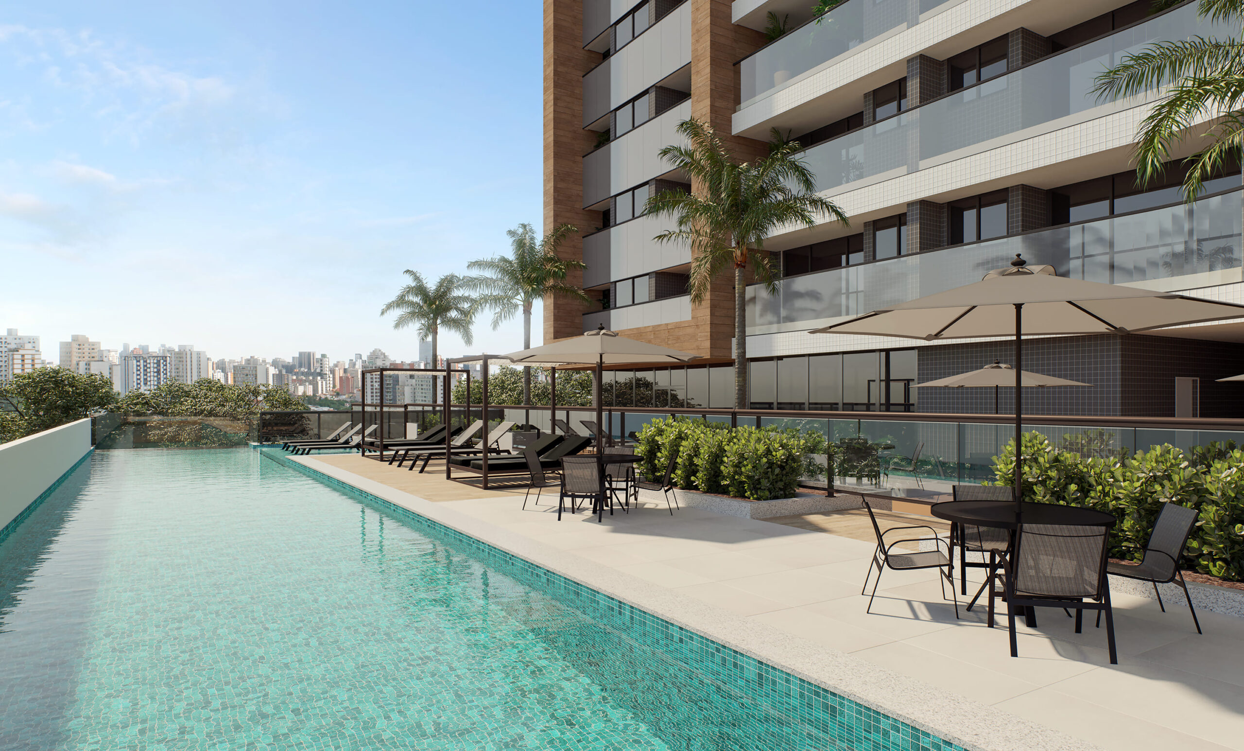 31 pavimentos com 6 pavimentos de garagem e uma Biofilia imponente.
