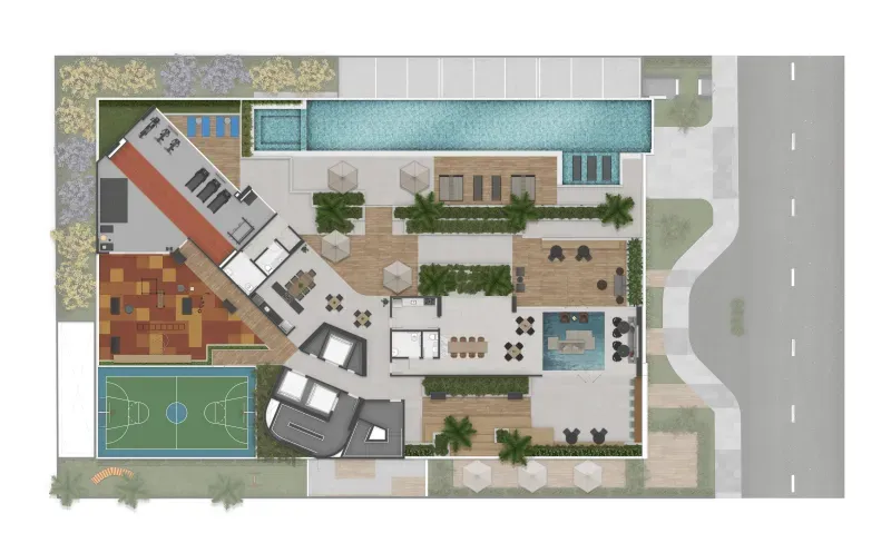 SERVIÇOS: Porte-cochere, Portaria, Delivery, Coworking, Lavanderia, Lobby, Loja, Praça apoio loja, Área de convivência, Pet place, Bike share.