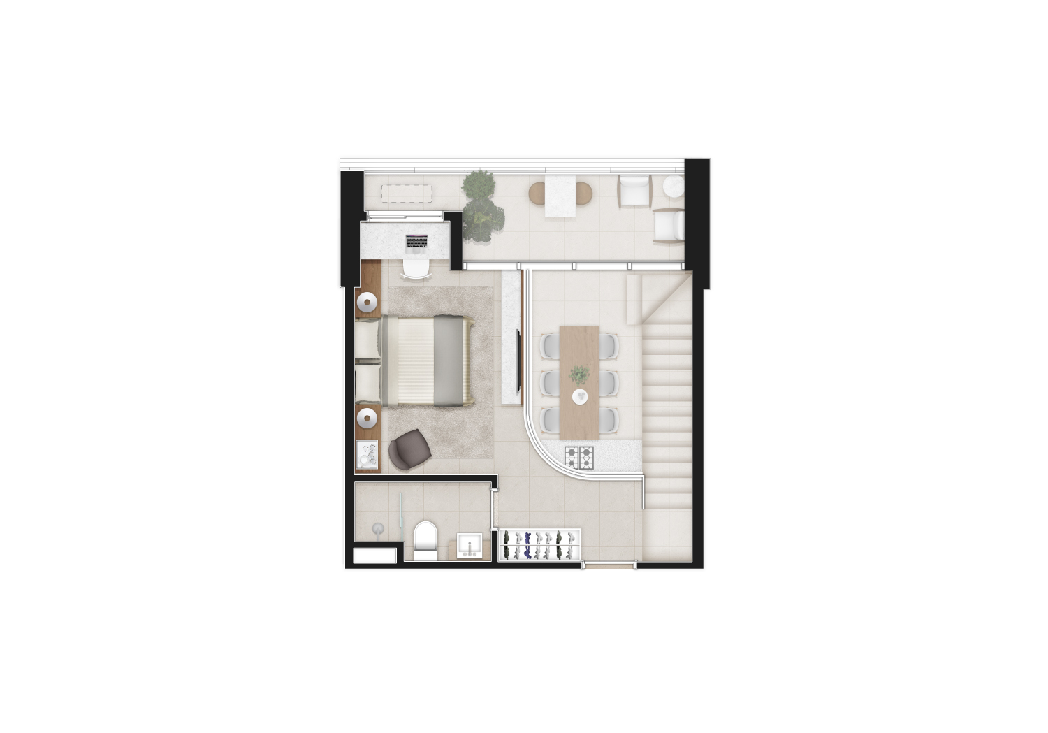LOFT DUPLEX PAVIMENTO SUPERIOR : 60m² – 1 suíte