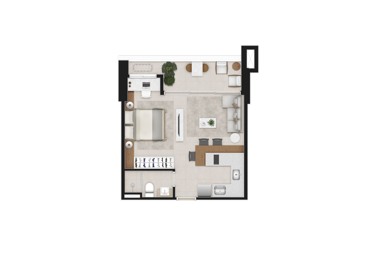 LOFT DUPLEX PAVIMENTO INFERIOR : 60m² – SALA, VARANDA, COZINHA