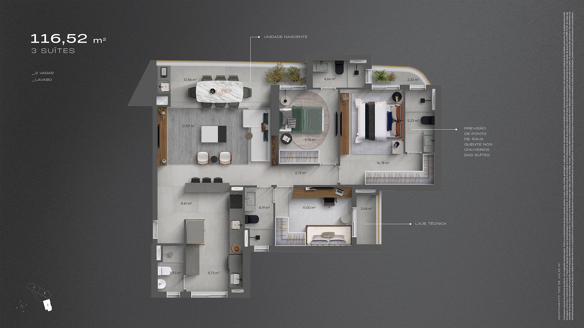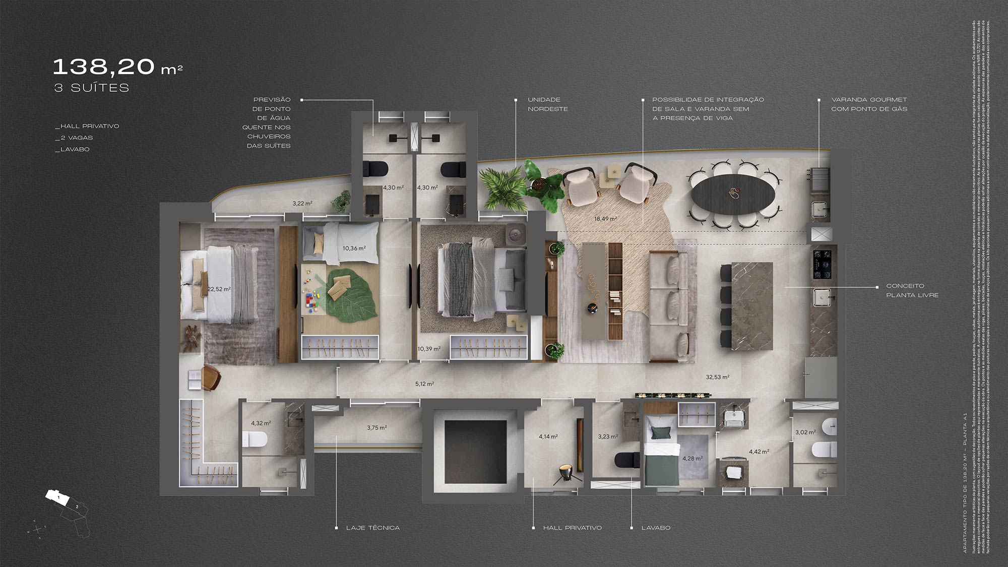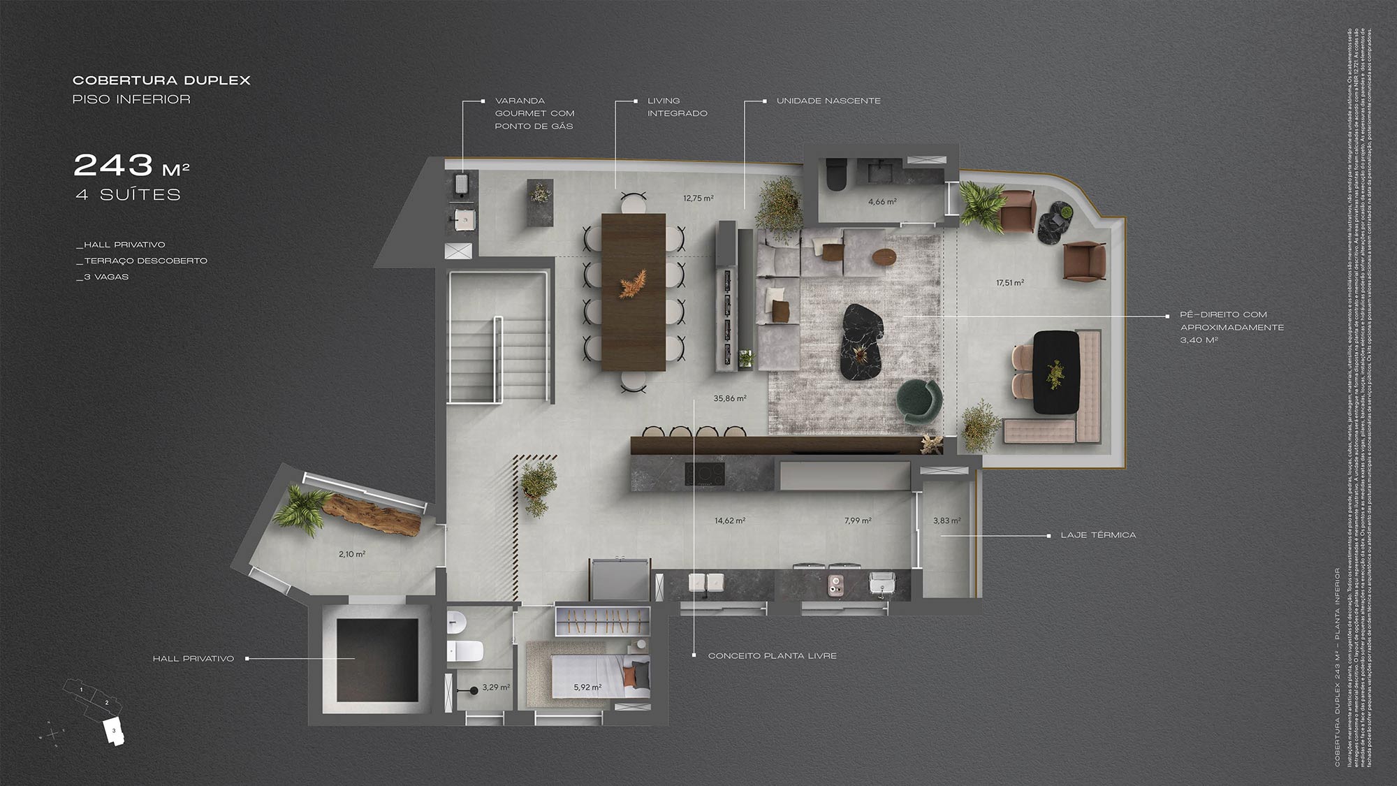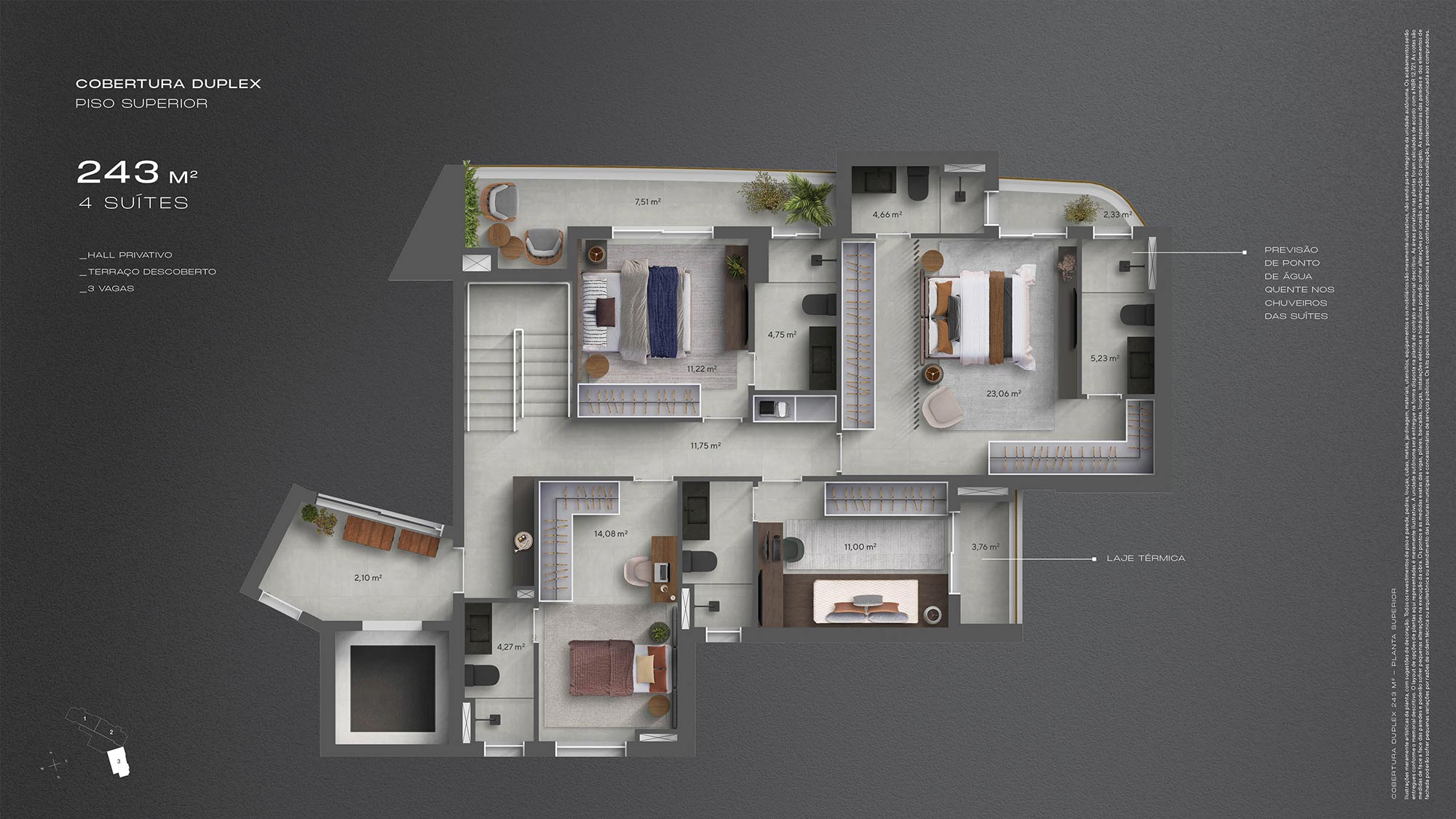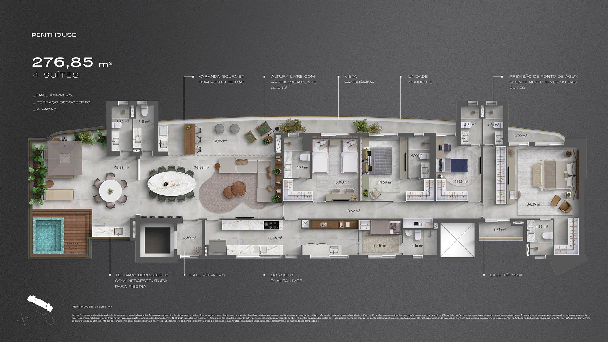 276,85 m2 Penthouse – 4 suítes, 4 vagas privativas